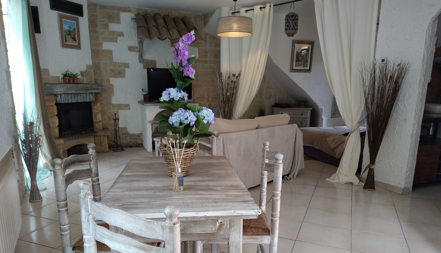 Le propriétaire au sein de sa maison vous propose un grand studio familial de 45m² avec accès wifi, tout équipé et d'une capacité de 4 couchages ainsi qu'un lit pour bébé. Sa charmante terrasse fleurie de 30m² avec barbecue est à votre disposition pour vos agréables soirées d'été.
